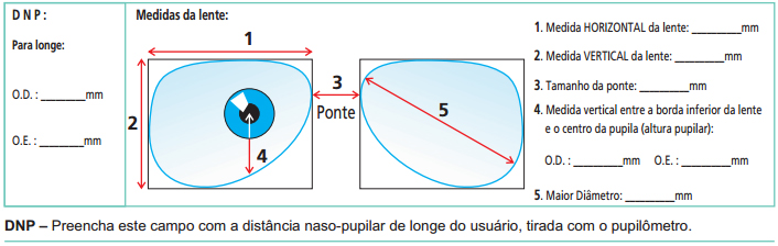 A tomada de medidas (do cliente e da armação) é de fundamental importância para a confecção de qualquer lente progressiva. Veja abaixo as medidas necessárias e a forma correta de tirá-las: